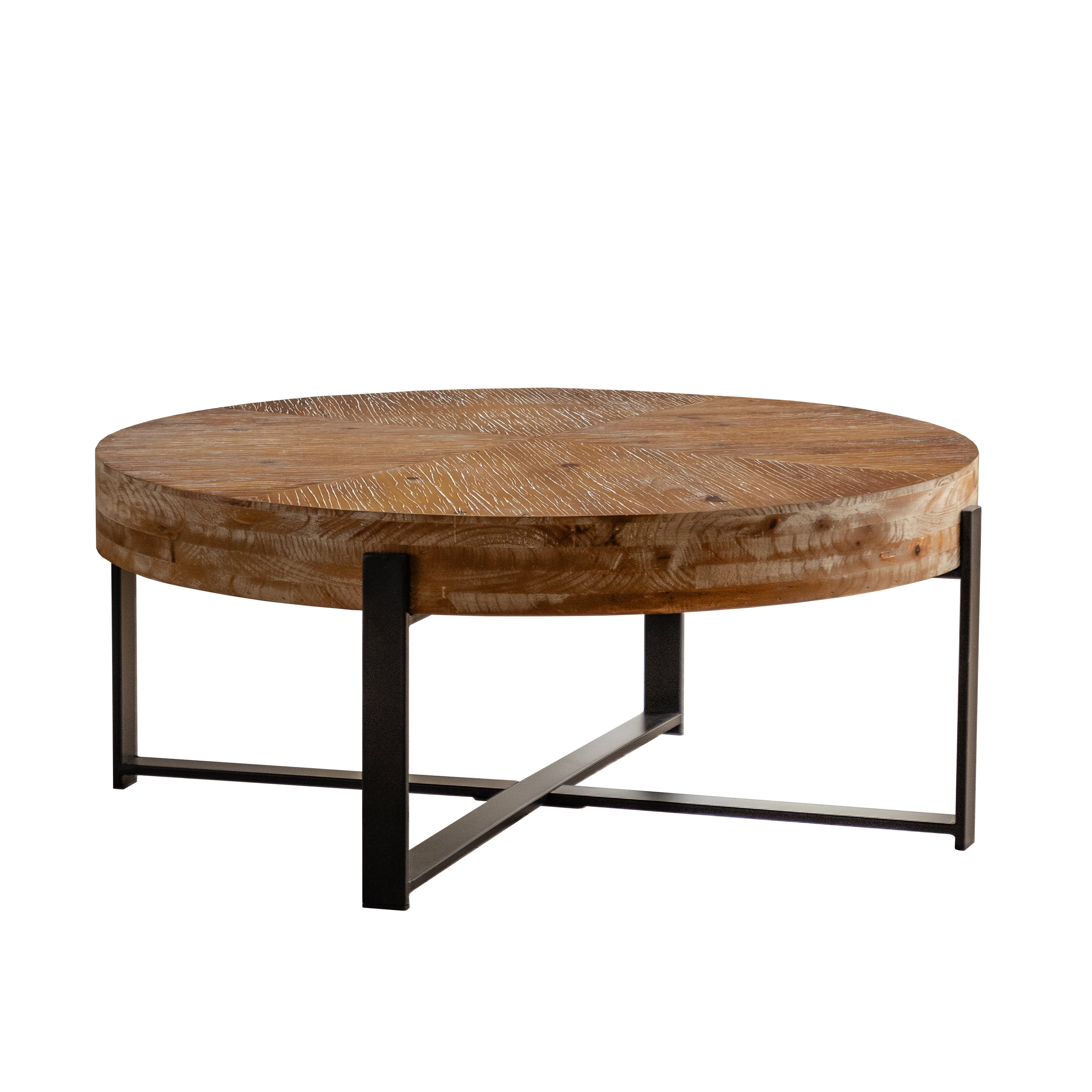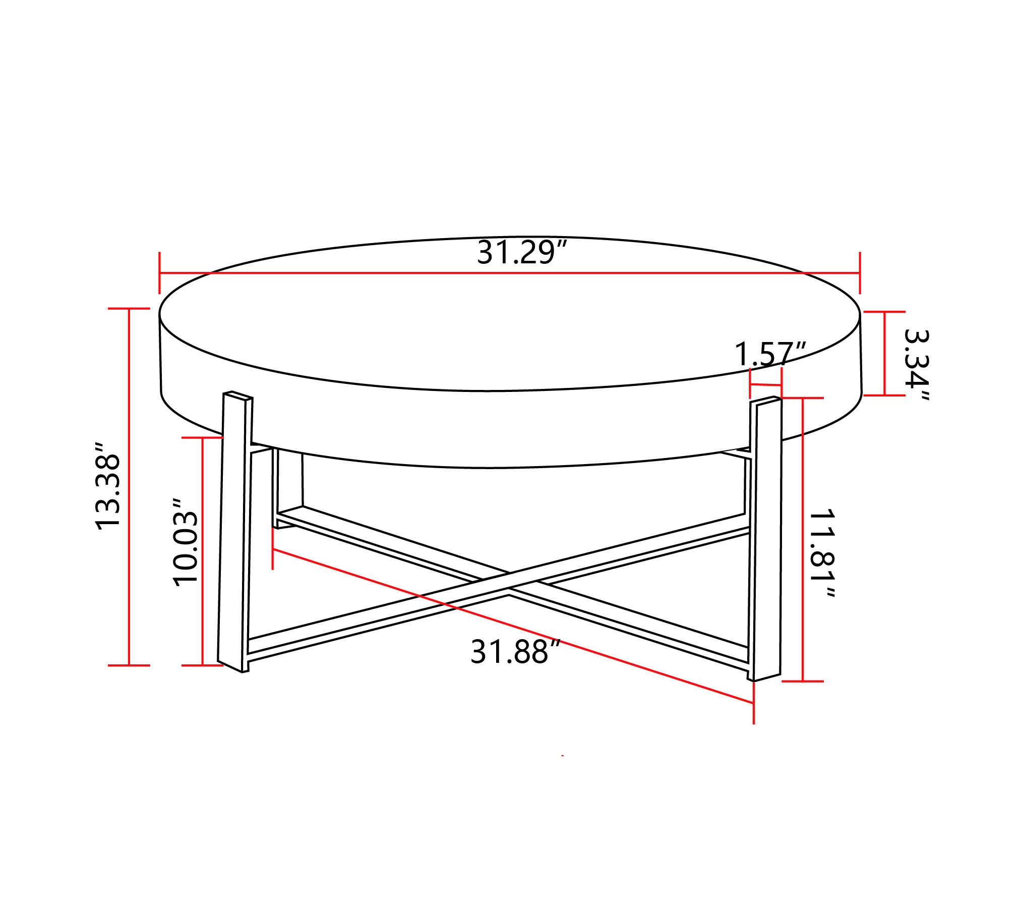High-quality materials: This round coffee table is made of high-quality fir wood on the top and sides, while the back of the table is made of high-quality MDF.The round coffee table has a solid metal iron frame, which is durable and solid, and cross legs provide stability.