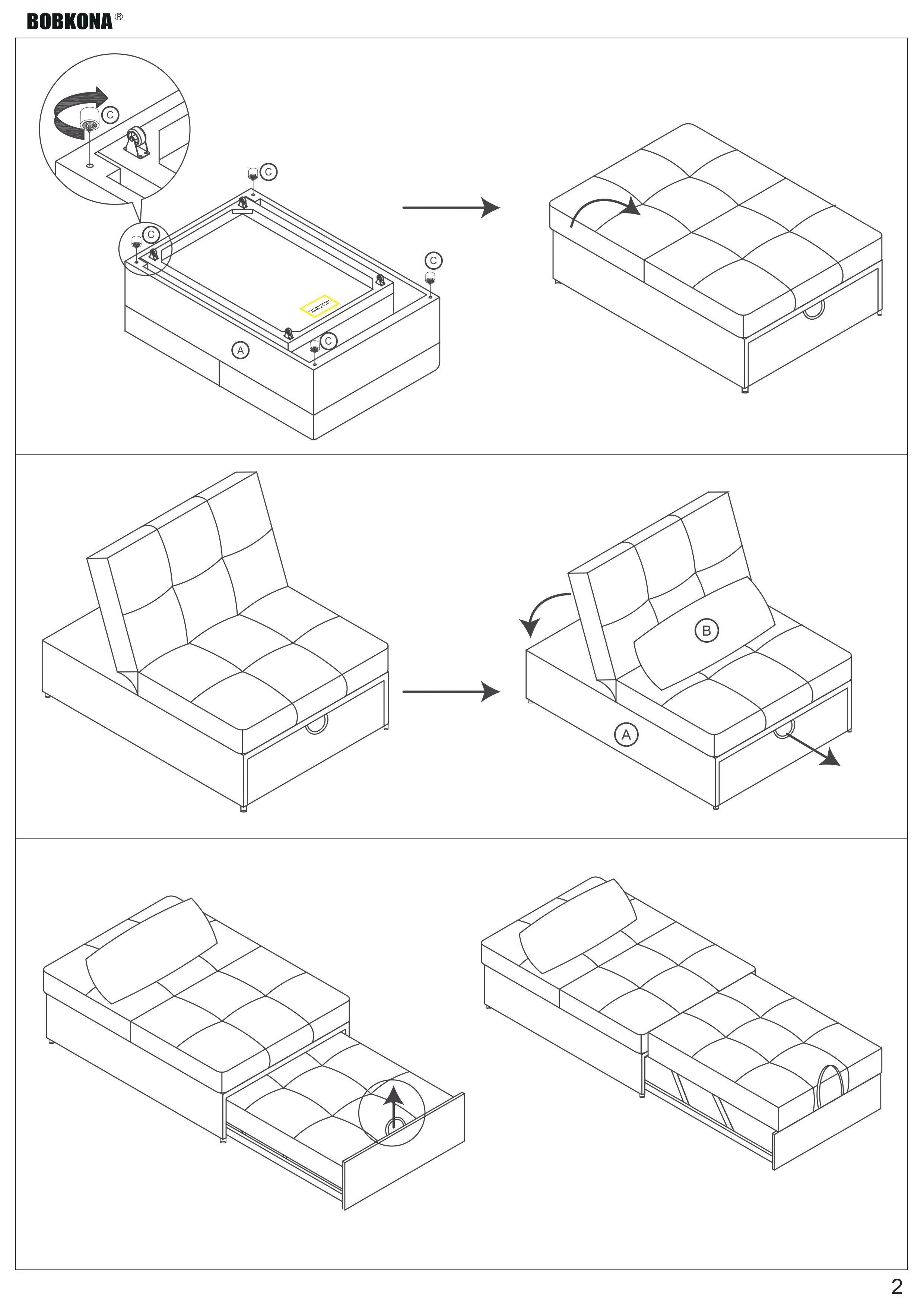 Sofa (UP) Pull-Out Bed :- 32" x 76" x 34"H