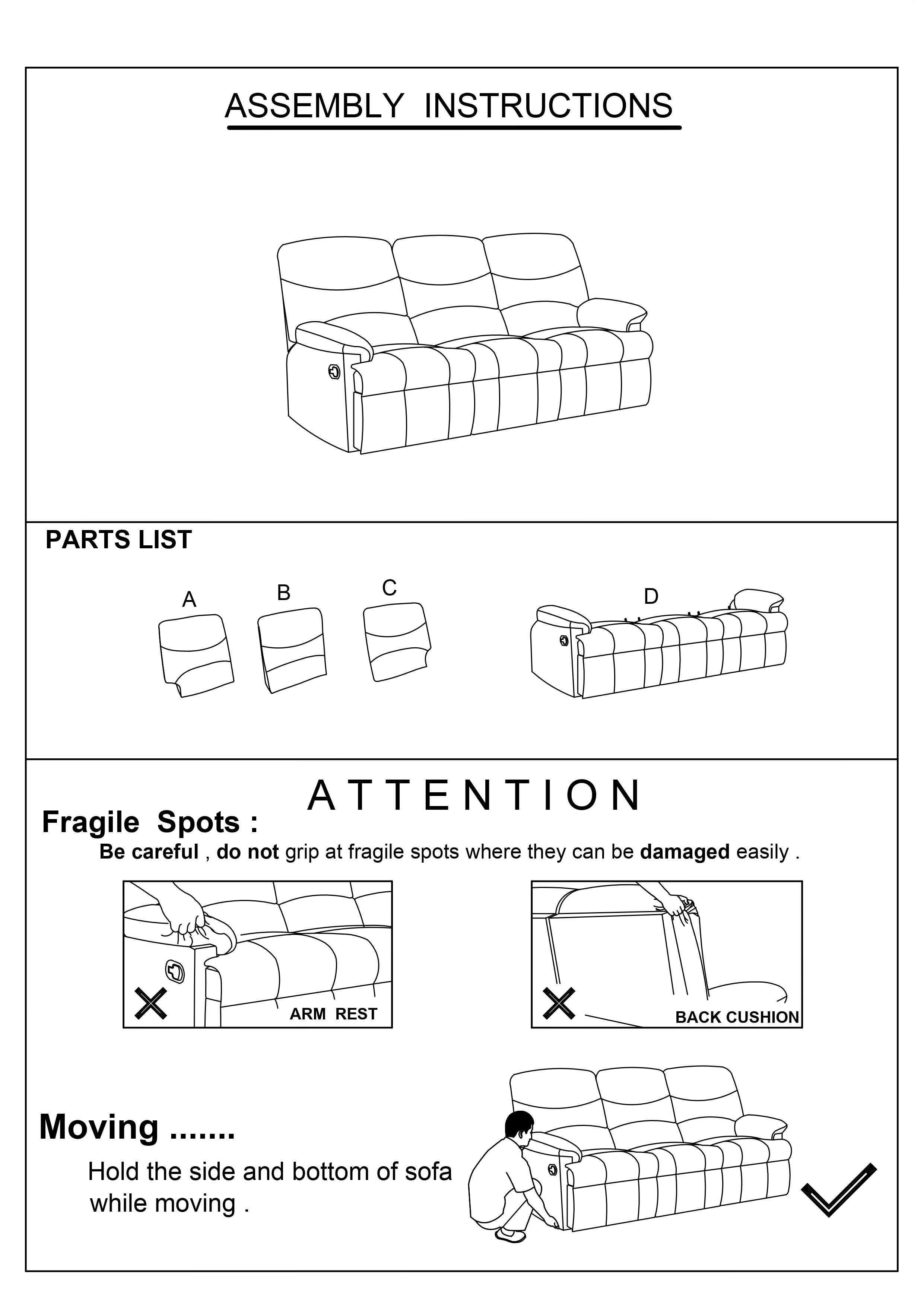 Product Description:-This 3-Seater Manual Recliner Sofa is perfect for unwinding after a long day, offering a plush seating experience that will transform your living space. Designed with your relaxation in mind, our recliner features smooth manual reclining functionality, effortlessly activated by the handle conveniently placed on the side. Whether you're catching up on your favorite TV show or enjoying a good book, you can easily find your ideal lounging position. The arms of this sofa are adorned with inviting arm pillows, providing extra support and a touch of elegance. Crafted with care, the sofa is upholstered in soft velvet material, ensuring a cozy and luxurious feel.Product Dimensions:-Motion Recliner Sofa- 74" x 36" x 40"HListing Include : 1pc Motion Recliner Sofa Only.Loveseat And Chair - Not Included.Simple Assembly requires.