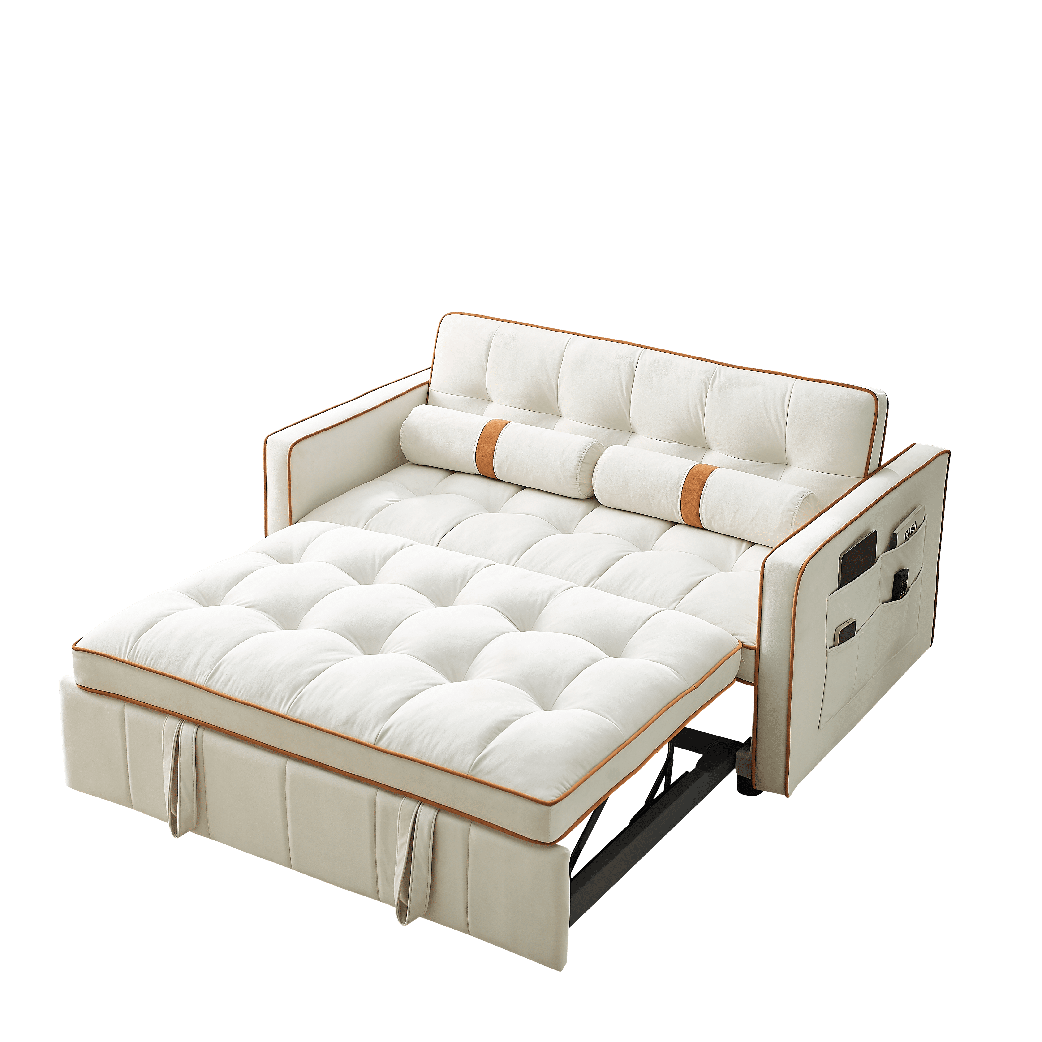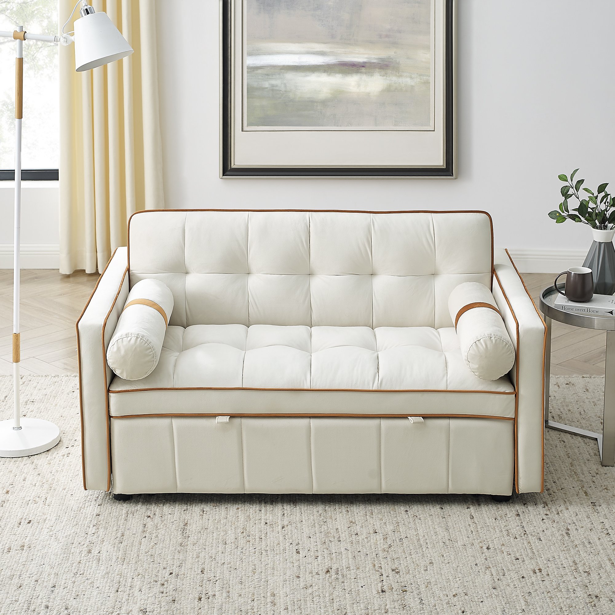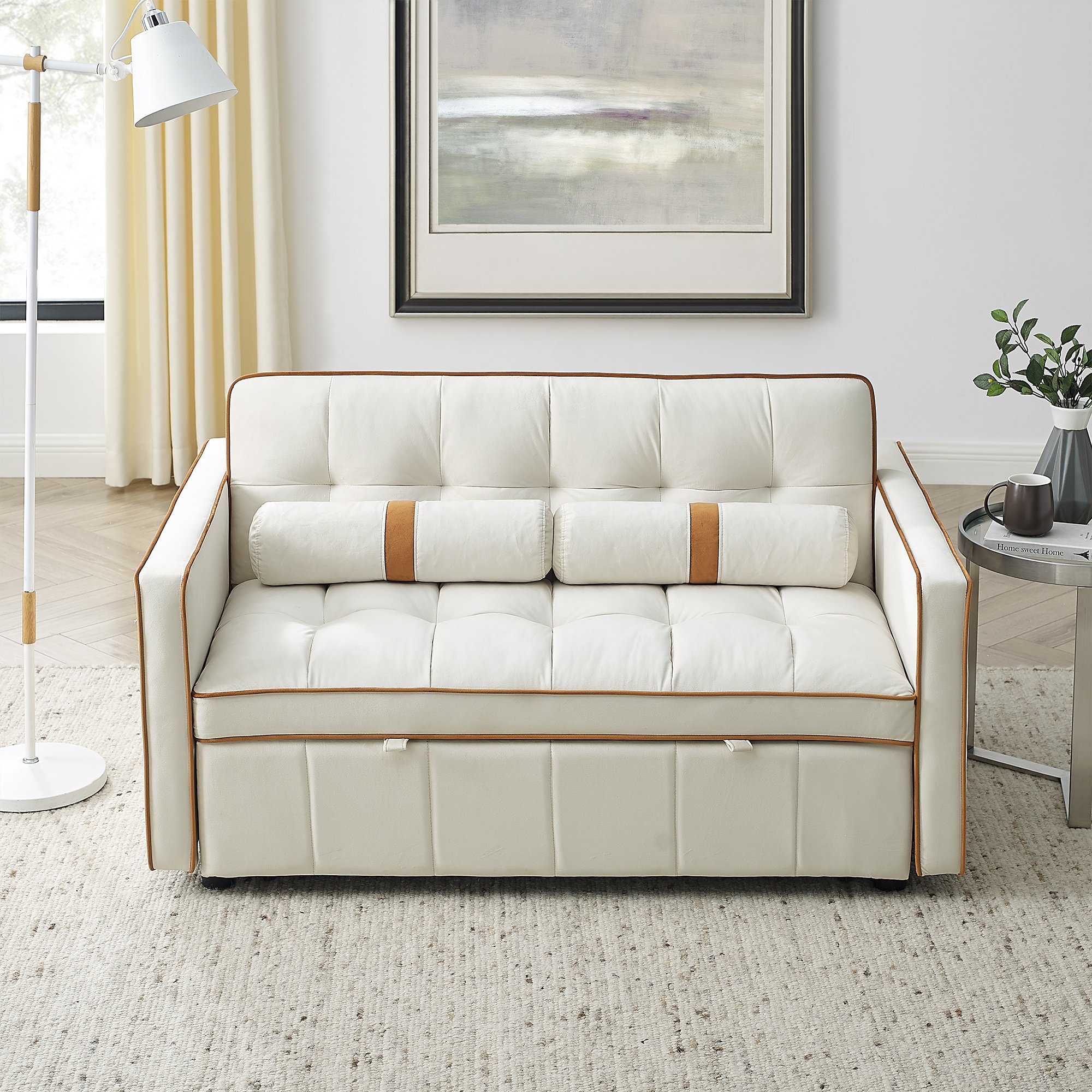 Modern 55.5" Pull Out Sleep Sofa Bed 2 Seater Loveseats Sofa Couch with side pockets, Adjsutable Backrest and Lumbar Pillows for Apartment Office Livi