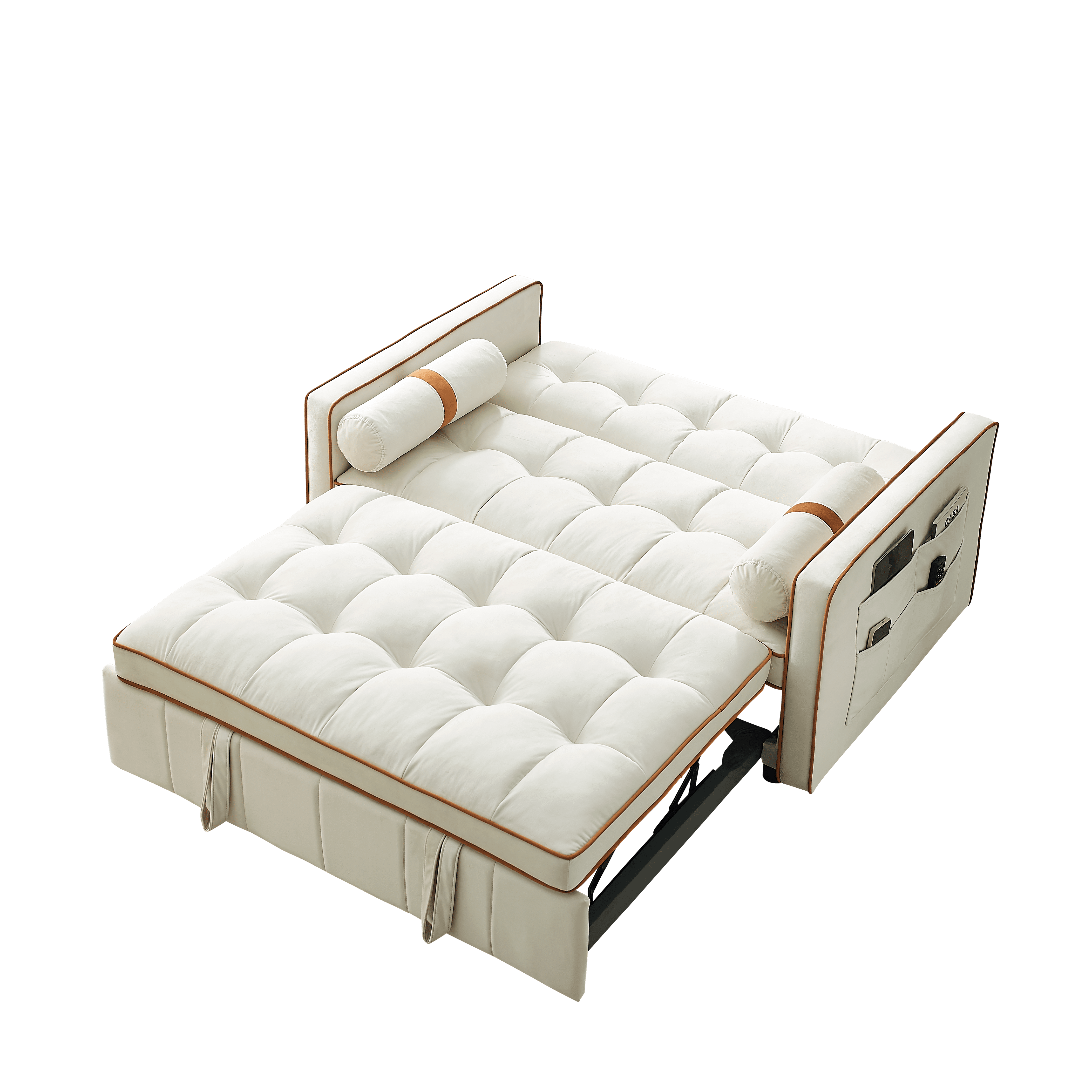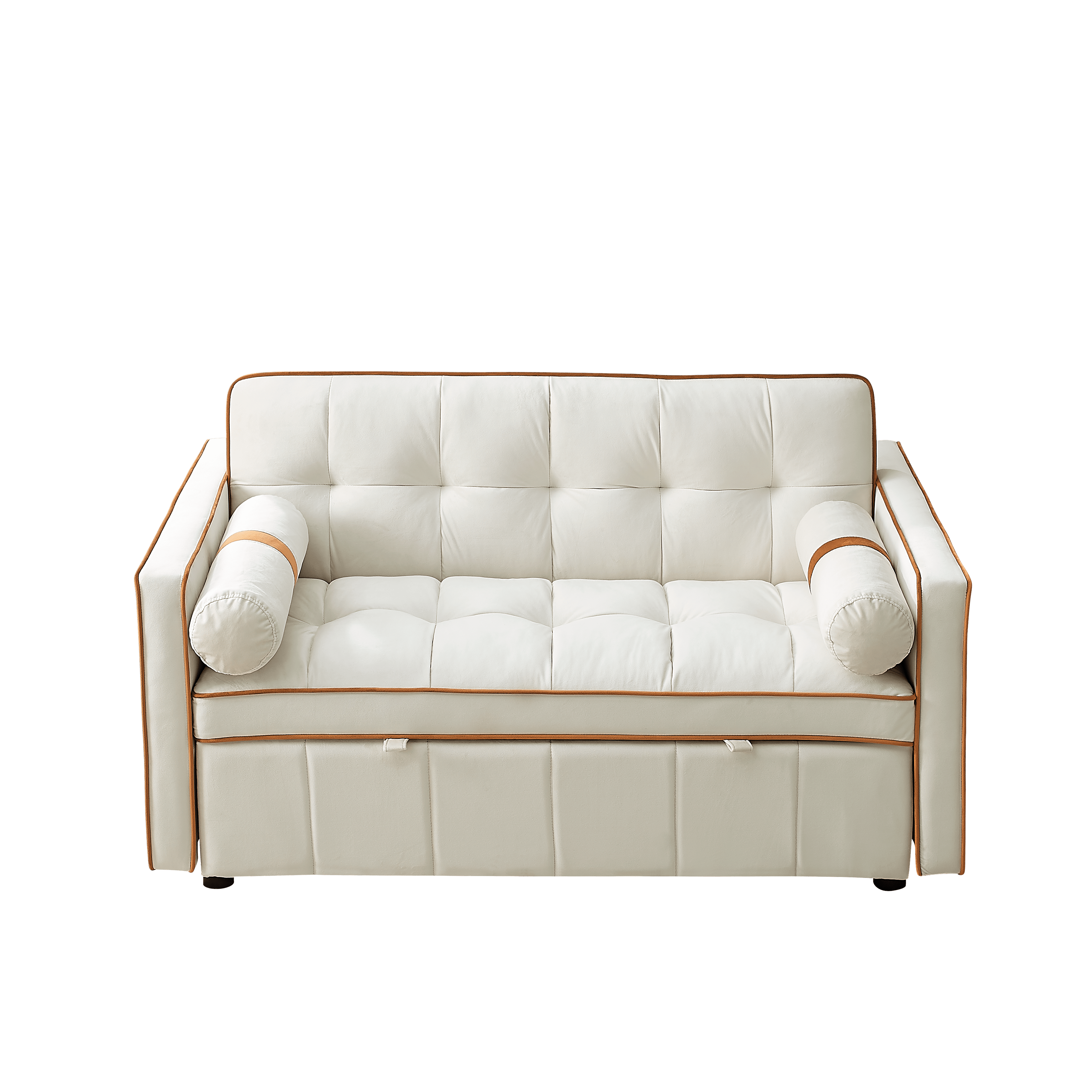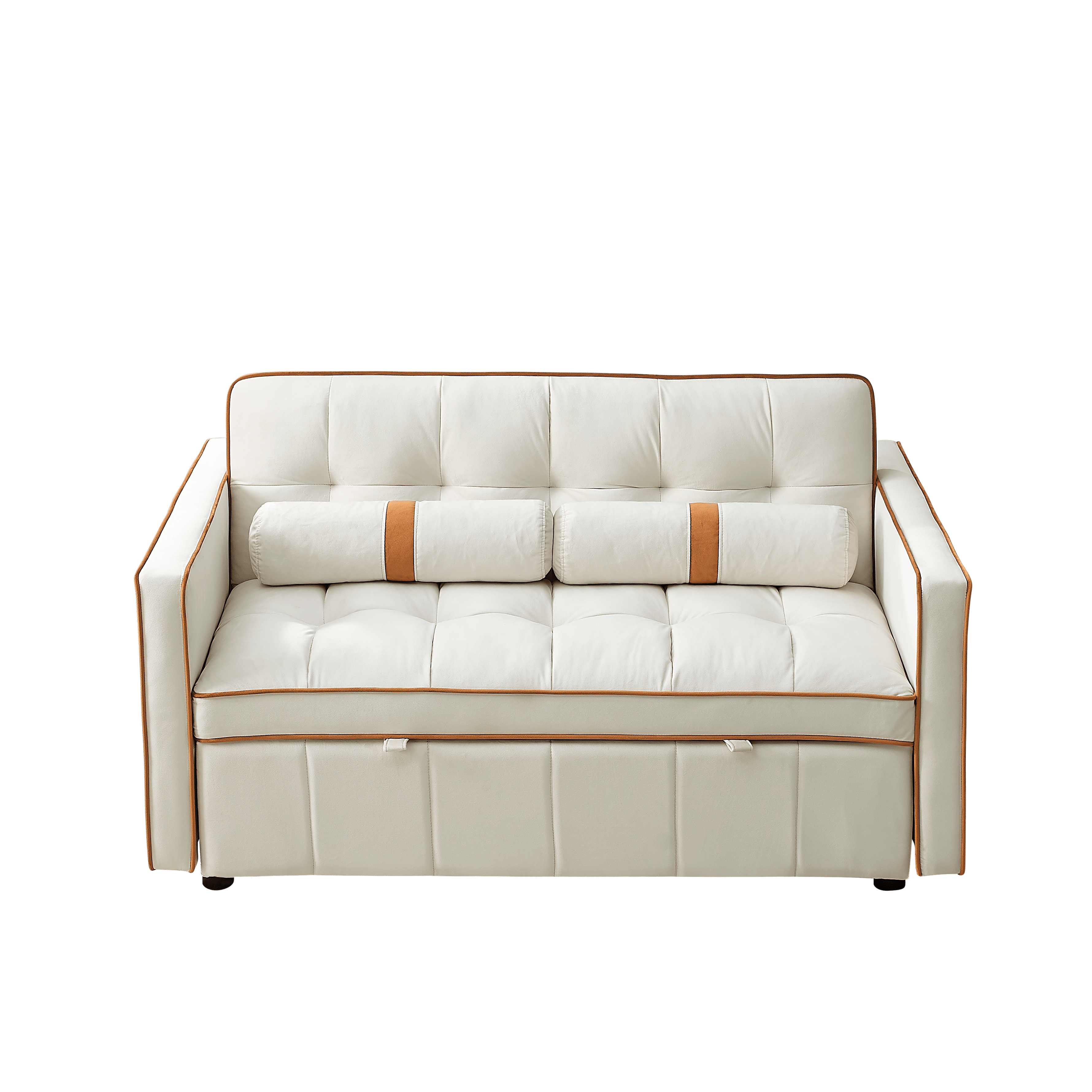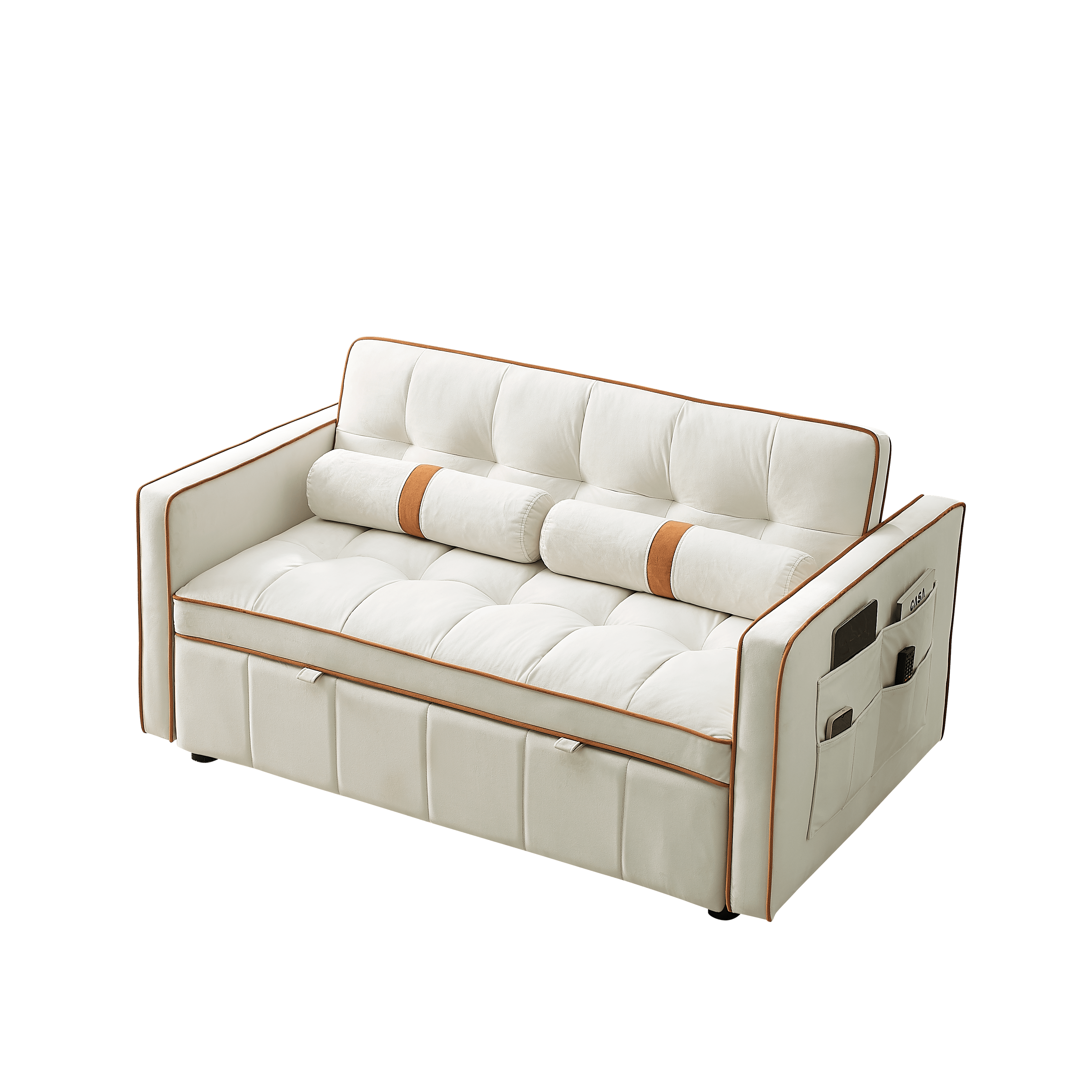 Modern 55.5" Pull Out Sleep Sofa Bed 2 Seater Loveseats Sofa Couch with side pockets, Adjsutable Backrest and Lumbar Pillows for Apartment Office Livi