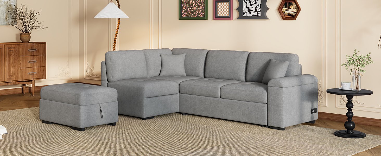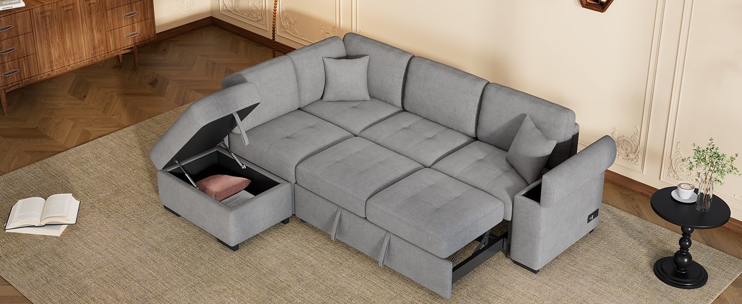 Pratical Sleeper Sofa Bed - An l-shape sofa can be easily converted into a bed. The equipped portable handle with the assistance of the bottom pulley device quickly completes the bed transformation. If you often have overnight guests, then this could be a great solution.