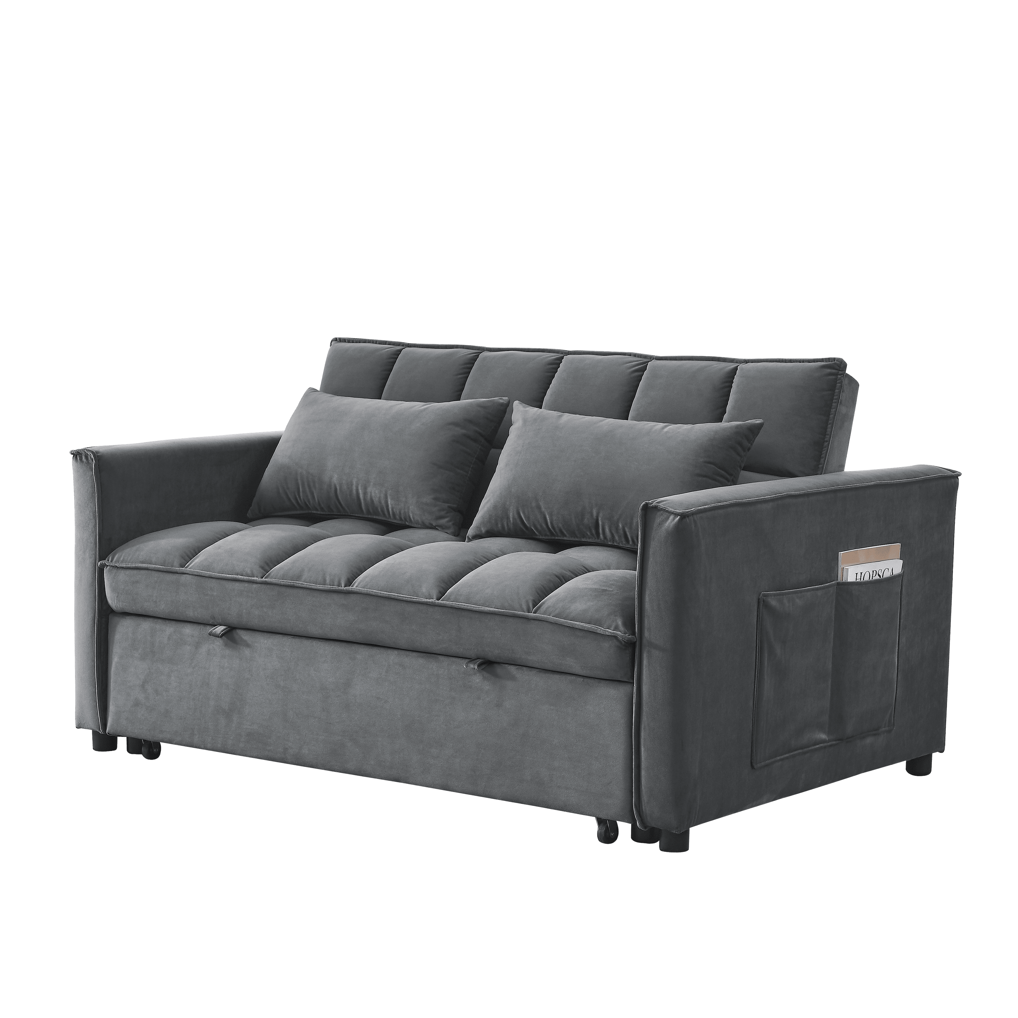 ★ 3 LEVELS OF ADJUSTABLE BACK SUPPORT: The sofa's adjustable backrest can be converted into 3 different angles, from 105° to 180°, allowing you to find the most comfortable position. In addition, this pull-out sofa bed comes with 2 side pockets to conveniently store your TV remote, cell phone, magazines, keys, glasses or the book you want to finish reading.